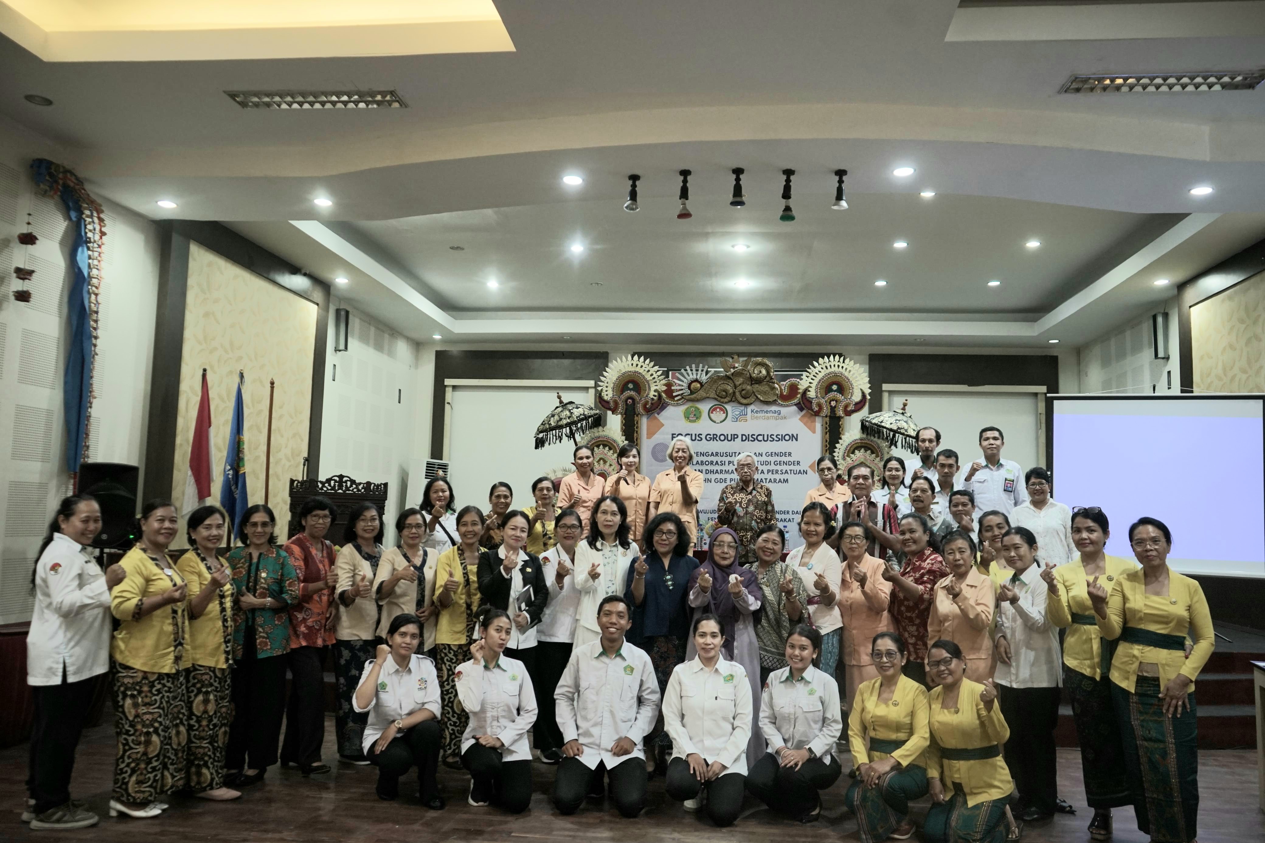 Mataram, 24 November 2025 – Dharma Wanita Persatuan (DWP) IAHN Gde Pudja Mataram berkolaborasi dengan Pusat Studi Gender (PSG) IAHN Gde Pudja Mataram menyelenggarakan Focus Group Discussion (FGD) Pengarusutamaan Gender bertema “Mewujudkan Kesetaraan Gender dalam Pendidikan dan Masyarakat.” Dalam rangkaian HUT DWP ke -26. Acara ini berlangsung di Aula Lantai III Gedung Rektorat IAHN Gde Pudja Mataram dan menjadi momentum penting dalam memperkuat sinergi antara DWP, PSG, serta berbagai mitra strategis.