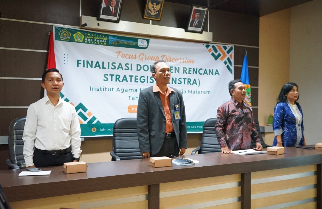 IAHN GDE PUDJA MATARAM CONDUCTED THE FINALIZATION OF ITS STRATEGIC PLAN (Renstra) for the 2025–2029 period on Thursday, 29 January 2026. The activity was held in the second-floor meeting room of the Rectorate Building and attended by institutional officials of IAHN Gde Pudja Mataram, along with the Chairperson of the Hindu Organization of West Nusa Tenggara (NTB) Province.