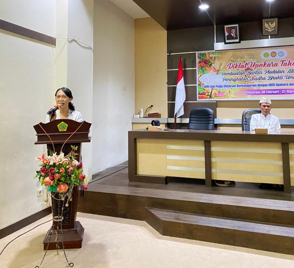 Mataram — Institut Agama Hindu Negeri (IAHN) Gde Pudja Mataram melalui Lembaga Penelitian dan Pengabdian kepada Masyarakat (LPPM) menyelenggarakan Pendidikan dan Pelatihan Pembuatan Banten Piodalan Alit Berbasis Tattwa dan Tata Cara pada Minggu, 8 Pebruari 2026, bertempat di Ruang Pertemuan Lantai 2 IAHN Gde Pudja Mataram. Pelatihan ini akan dilaksanakan setiap hari Minggu dan berakhir pada 31 Maret 2026.