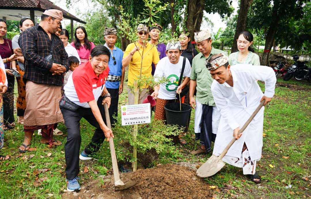 The activity took place at Pura Dalem Swasta Pranawa, Abian Tubuh, Cakranegara, and was implemented as a Community Service program managed by the Economics Management Study Program of IAHN Gde Pudja Mataram. The program was chaired by I Gede Bayu Wijaya, M.M., and carried out in collaboration with INTI (Perhimpunan Indonesia Tionghoa) of West Nusa Tenggara and BPDAS (Balai Pengelolaan Daerah Aliran Sungai) NTB.