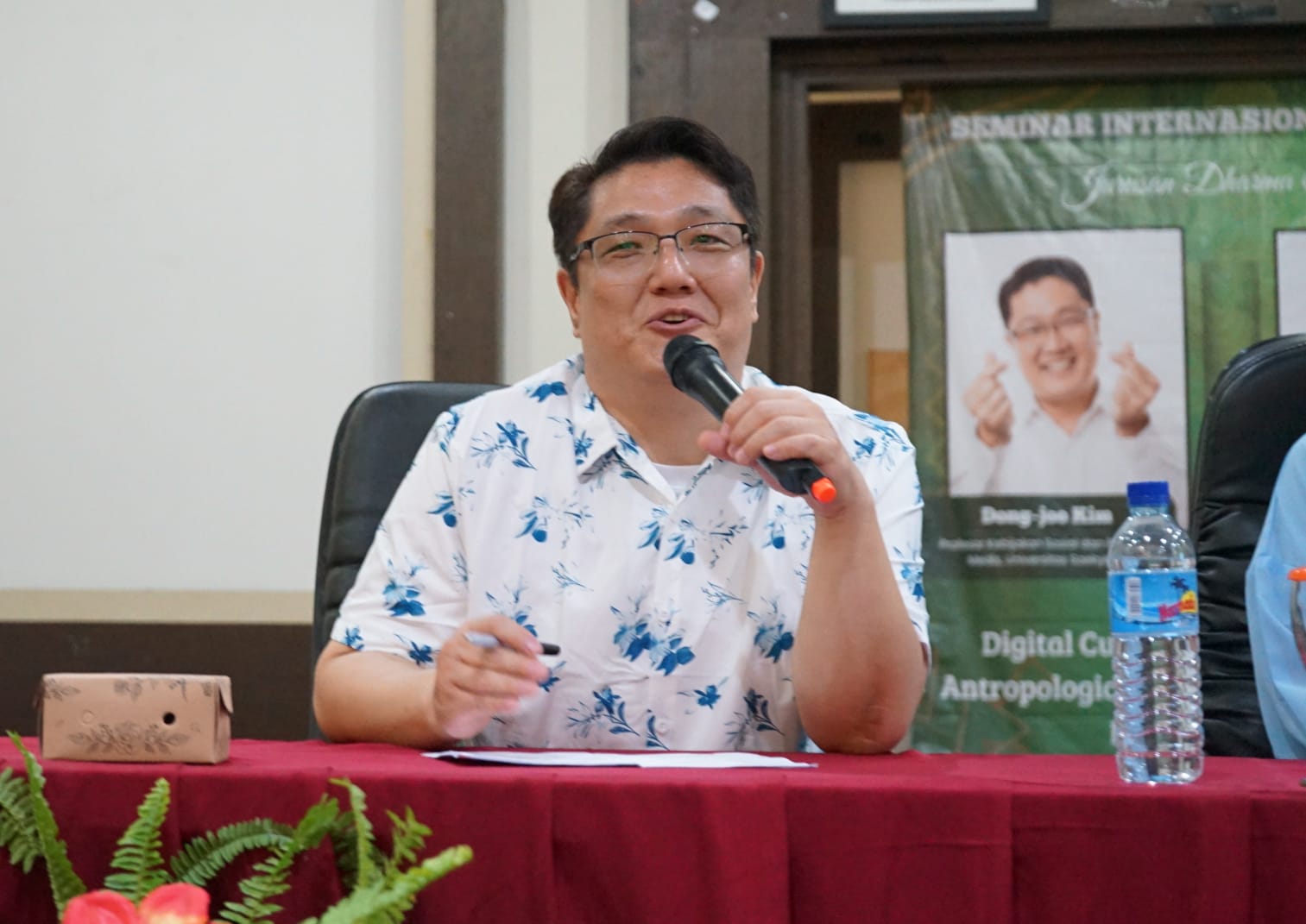 The seminar featured two distinguished speakers. The first speaker, Mr. Dong-Joo Kim, Professor of Social Policy and Medical Research at Saekyeong University, Republic of Korea, presented an international perspective on social policy, quality of life, and the challenges of digital transformation. The second speaker, Dr. Ni Luh Sinar Ayu Ratna Dewi, S.S., M.Ag., a lecturer at IAHN Gde Pudja Mataram and Chair of the Institute for Research and Community Service (LPPM), delivered an anthropological and cultural analysis of digital culture and artificial intelligence in the Indonesian context. The seminar was moderated by Dewi Kusumasanthi, who facilitated the discussion and ensured productive academic interaction between the speakers and participants. The panel session emphasized the importance of interdisciplinary dialogue in understanding the social, cultural, and ethical dimensions of technological advancement.