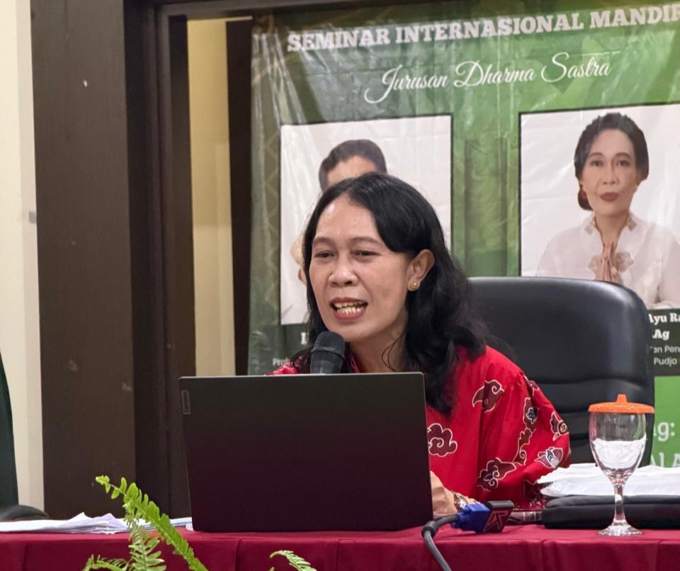 The Department of Dharma Sastra, IAHN Gde Pudja Mataram, successfully organized an International Seminar on Monday, 15 December 2025, at the 3rd Floor Meeting Hall of the Rectorate Building. The seminar was conducted under the theme “Digital Culture and Social Well-being: Anthropological Insights in the Age of AI and Hyperconnectivity,” addressing contemporary issues related to artificial intelligence, digital culture, and their implications for society.