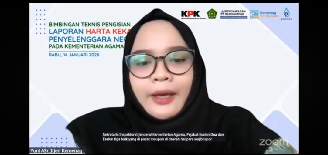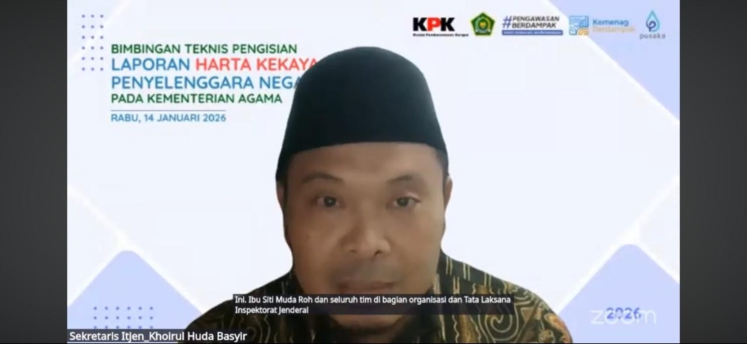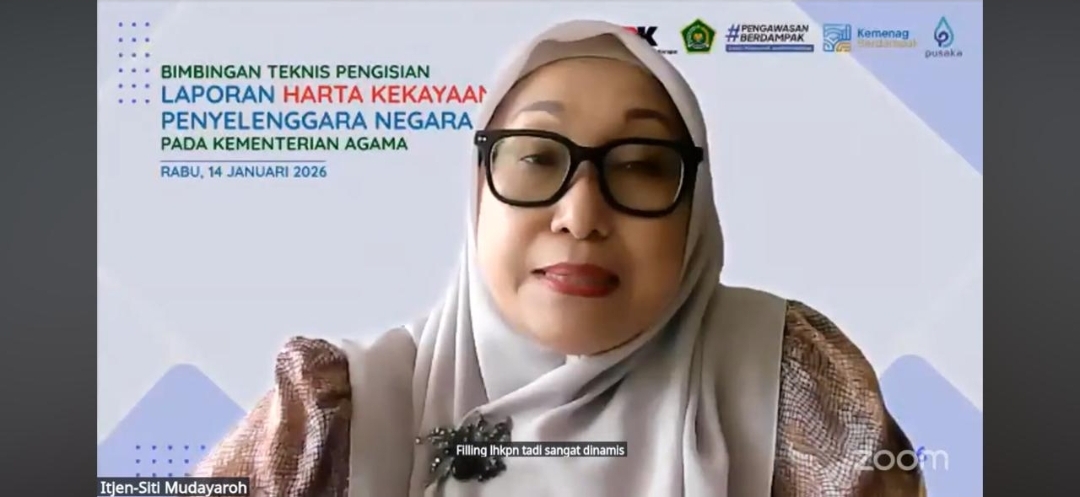 Inspektur Jenderal Kementerian Agama Khairunas secara resmi membuka kegiatan Bimbingan Teknis (Bimtek) Pengisian Laporan Harta Kekayaan Penyelenggara Negara (LHKPN) pada Rabu, 14 Januari 2026. Kegiatan yang diselenggarakan oleh Inspektorat Jenderal Kementerian Agama ini dilaksanakan secara daring melalui Zoom Meeting dan disiarkan langsung melalui kanal YouTube Itjen Kemenag sebagai bagian dari pelaksanaan Rencana Kinerja Tahun 2026.