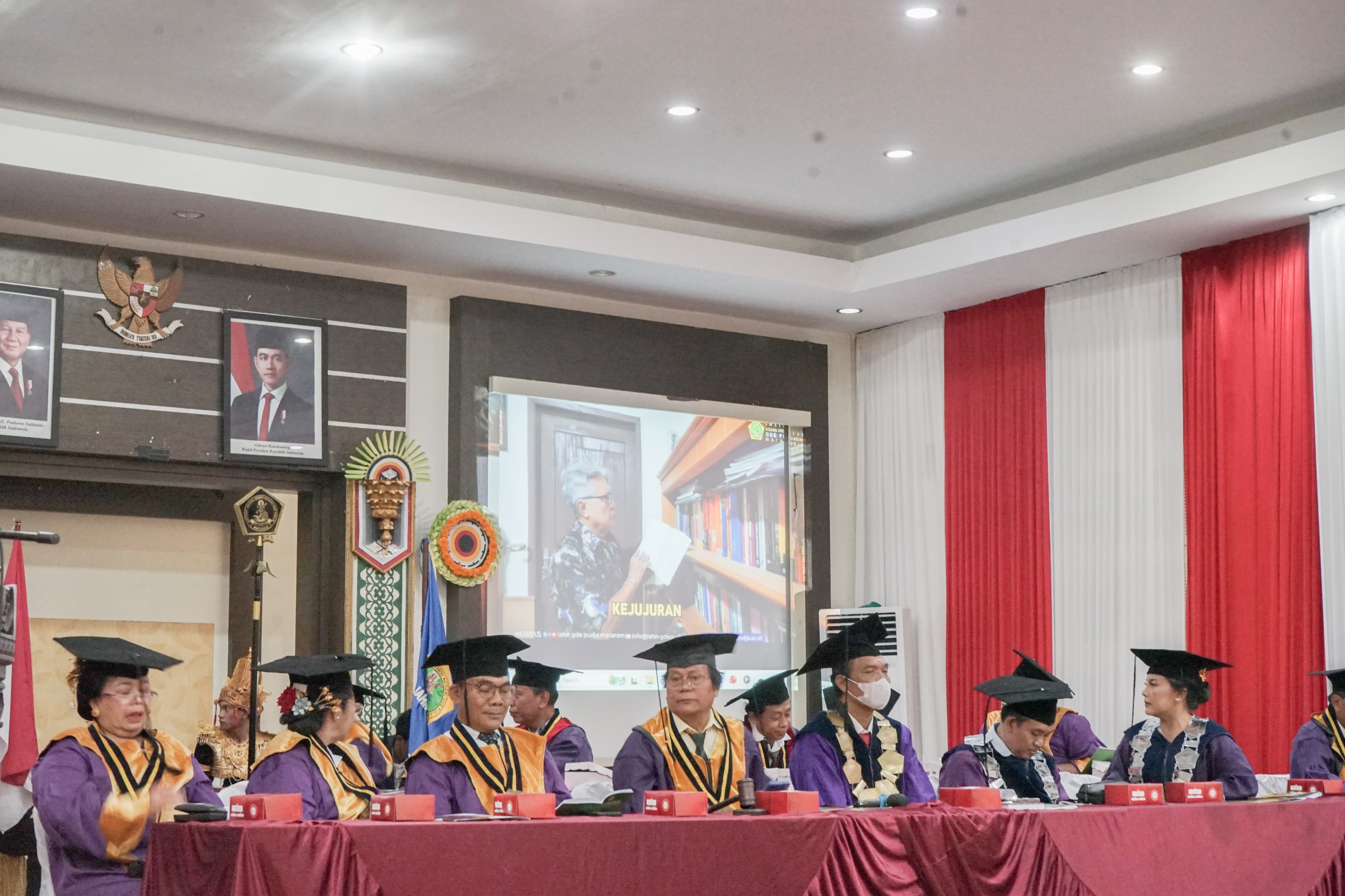 Mataram, November 10, 2025 — The Institute of Hindu Dharma Negeri (IAHN) Gde Pudja Mataram proudly held an Open Senate Session to commemorate the Inauguration of Prof. Dr. Drs. I Wayan Sumertha, M.Ag. as Professor in Hindu Theology. This momentous occasion marks him as the seventh Professor of IAHN Gde Pudja Mataram a significant milestone in the institute’s academic journey. The ceremony took place at the Meeting Hall, 3rd Floor of the Rectorate Building, on Monday, November 10, 2025.