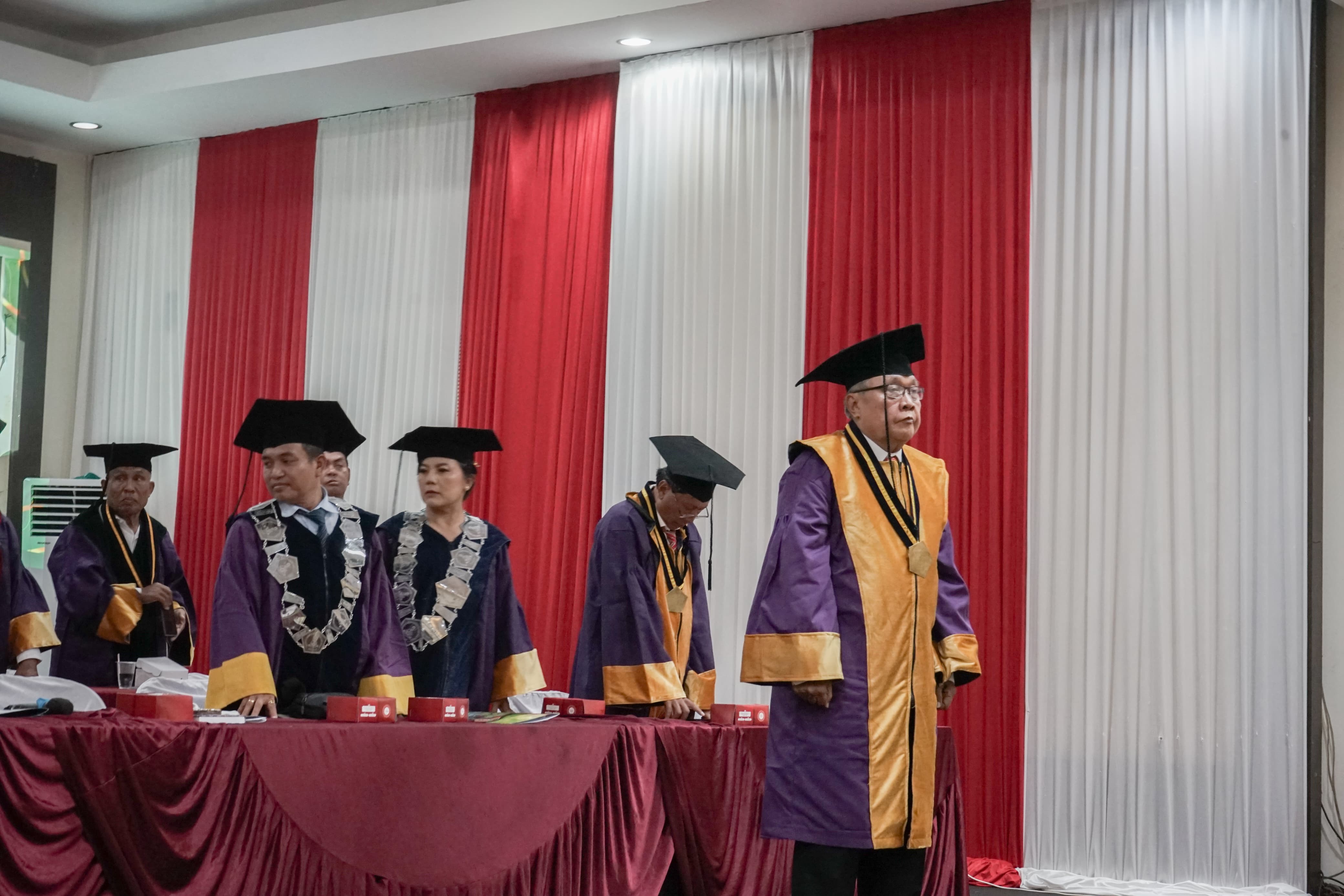 The highlight of the ceremony was the Inaugural Academic Oration delivered by Prof. Dr. Drs. I Wayan Sumertha, M.Ag., titled “Hinduism in the Civilization of the Archipelago: A Historical-Theological Study.” In his oration, Prof. Sumertha examined the profound influence of Hindu values on the spiritual and cultural formation of the Indonesian archipelago, underlining the importance of theology as a guiding force in maintaining moral integrity and cultural harmony in modern society.