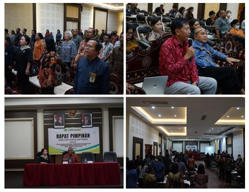 Rektor IAHN Gde Pudja Mataram, Prof. Dr. Ir. I Wayan Wirata, A.Ma., S.E., M.Si., M.Pd., dalam sambutannya menyampaikan harapan besar agar sinergi pimpinan dapat memperkuat soliditas lembaga. “Saya sangat berharap adanya rapat pimpinan dapat membuat lembaga semakin solid, semakin harmoni, sehingga kita dapat bersama-sama membangun lembaga ini dari institut menjadi universitas,” ujar Rektor.