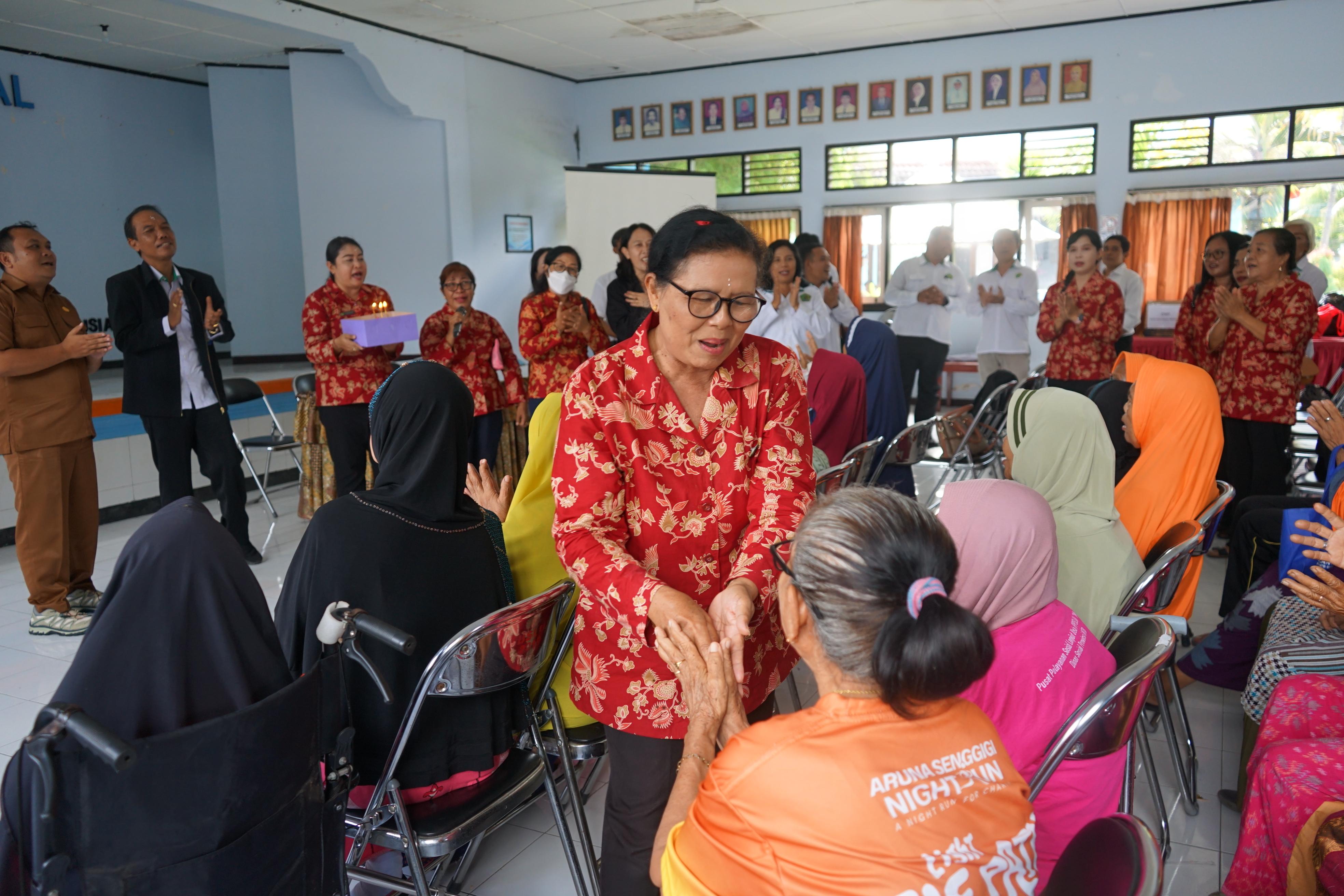 Puncak kegiatan dilaksanakan pada Senin, 22 Desember 2025, bertepatan dengan peringatan Hari Ibu. Pada momentum tersebut, DWP IAHN Gde Pudja Mataram melaksanakan kunjungan silaturahmi ke Panti Jompo di Kota Mataram. Dalam kunjungan ini, DWP menyalurkan bantuan berupa pakaian baru, selimut, serta paket sembako kepada para lansia sebagai bentuk kepedulian dan empati sosial. Selain itu, DWP IAHN Gde Pudja Mataram juga menyerahkan seragam kerja kepada tenaga Cleaning Service di lingkungan kampus. Penyerahan seragam ini merupakan wujud perhatian dan apresiasi atas dedikasi mereka dalam menjaga kebersihan, kenyamanan, dan kelestarian lingkungan kampus.