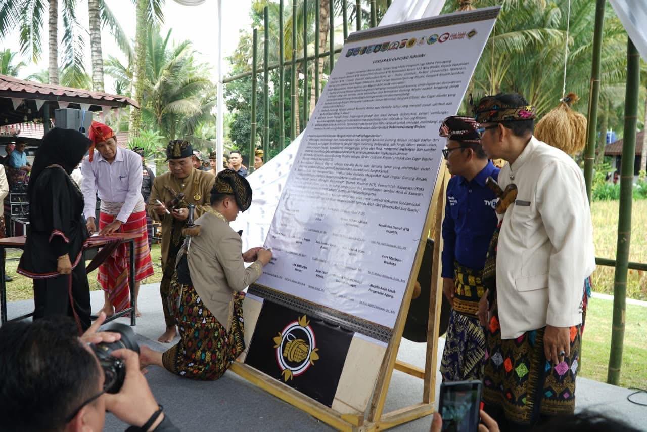 Acara tersebut turut dihadiri oleh Rektor IAHN Gde Pudja Mataram yang diwakili oleh Ketua Senat IAHN Gde Pudja Mataram, Prof. Dr. Drs. I Nyoman Murba Widhana, M.Ag. Kehadiran unsur akademisi ini menjadi penegasan pentingnya peran perguruan tinggi dalam pelestarian adat, budaya, dan nilai-nilai kearifan lokal Sasak melalui pendidikan, penelitian, dan pengabdian kepada masyarakat. Rangkaian acara diawali dengan tembang pembuka, pembacaan Al-Qur’an, doa, serta menyanyikan lagu Indonesia Raya. Selanjutnya disampaikan laporan Ketua Panitia Dr. H. Ashari, SH., MH, pembacaan Deklarasi Gunung Rinjani, serta orasi budaya sebagai refleksi nilai-nilai luhur adat Sasak.