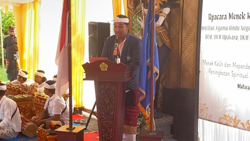 Sambutan juga disampaikan oleh Kepala LPPM IAHN Gde Pudja Mataram, Dr. Ni Luh Sinar Ayu Ratna Dewi, S.S., M.Ag., yang menyatakan bahwa kegiatan Menek Kelih dan Metatah ini selaras dengan ajaran Tri Hita Karana, yakni membangun hubungan harmonis antara manusia dengan Tuhan, sesama manusia, dan alam.