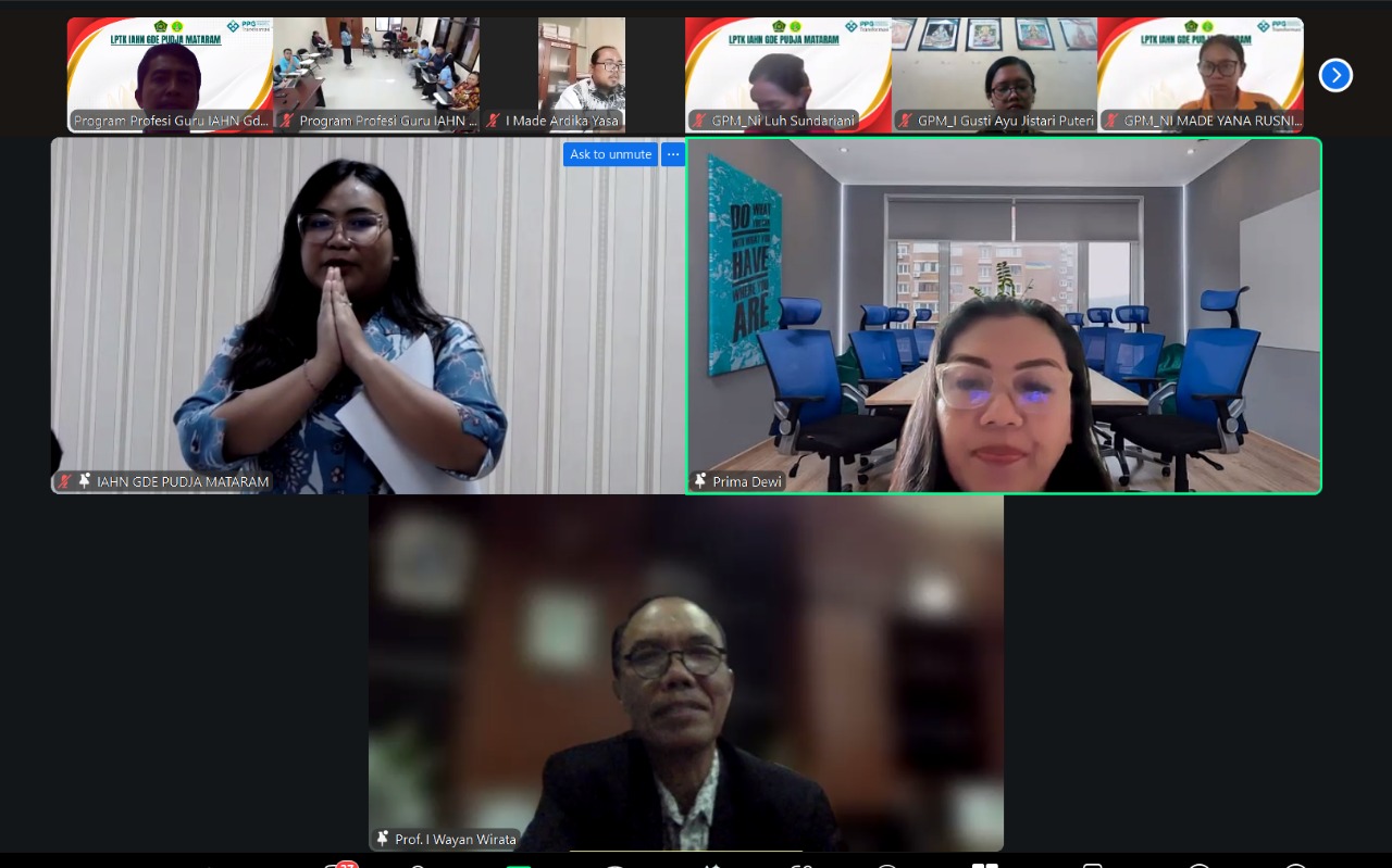 Mataram, 3 Oktober 2025 – Institut Agama Hindu Negeri (IAHN) Gde Pudja Mataram kembali menunjukkan komitmennya dalam meningkatkan kualitas calon guru profesional melalui penyelenggaraan Webinar Persiapan Uji Kompetensi Mahasiswa Program Pendidikan Profesi Guru (UKMPPG) yang berlangsung secara daring melalui Zoom Meeting pada Jumat, 3 Oktober 2025 pukul 10.00 WITA. Kegiatan ini merupakan bagian dari rangkaian persiapan tahap akhir bagi 497 mahasiswa PPG Batch 3 yang sedang menempuh Pendidikan Profesi Guru di IAHN Gde Pudja Mataram. Webinar ini menjadi wadah penguatan sekaligus pembekalan intensif sebelum para mahasiswa menghadapi UKMPPG.